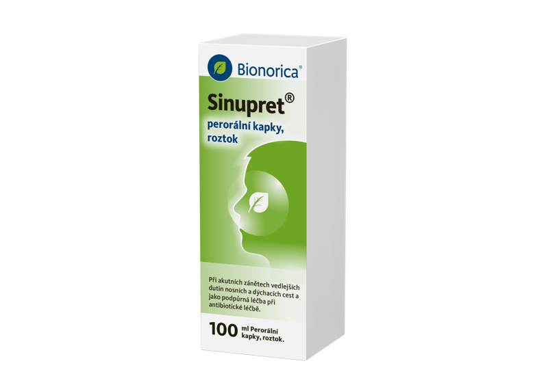 2 Sinupret® perorální kapky, roztok. Příbalová informace pro uživatele (příbalový leták). Státní ústav pro kontrolu léčiv (SÚKL). Dostupné z: https://prehledy.sukl.cz/prehled_leciv.html#/leciva/0075868. Citováno: 01. 01. 2026.