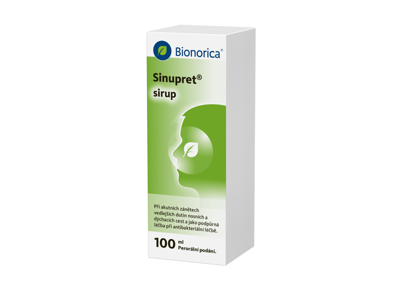 1 Sinupret® sirup. Příbalová informace pro uživatele (příbalový leták). Státní ústav pro kontrolu léčiv (SÚKL). Dostupné z: https://prehledy.sukl.cz/prehled_leciv.html#/leciva/0221725. Citováno: 01. 01. 2026.